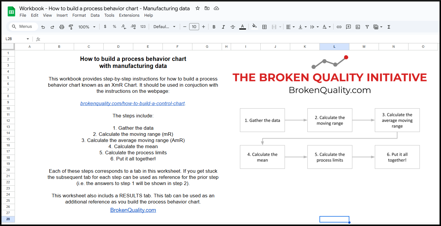 The utility of building your own process behavior charts, as opposed to relying on software to build them for you, is multifaceted. First, it forces knowledge and familiarity with the process or system that generated the data. Without such knowledge, process data is little more than numbers on a screen with no overt connection to the real world. Second, building your own process behavior charts enables you to more readily make sense of variation. It allows you to check your work and identify mistakes before they become a larger issue. Finally, building your own process behavior charts empowers you to perform analysis and facilitate improvement with no prerequisite for third party software. It allows you to use the most basic and ubiquitous analysis tools (spreadsheet software) to characterize processes and facilitate improvement. This ensures that the time and attention of technical resources are directed to where they are needed most. It ensures that you turn data into insights and insights into actions that result in quantifiable change.