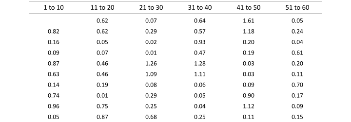 The sum of all the values in the dataset shown in Table 1 is 66.07. The number of values in the dataset is 60. Thus, the mean for the manufacturing data shown in Table 1 is 1.11.