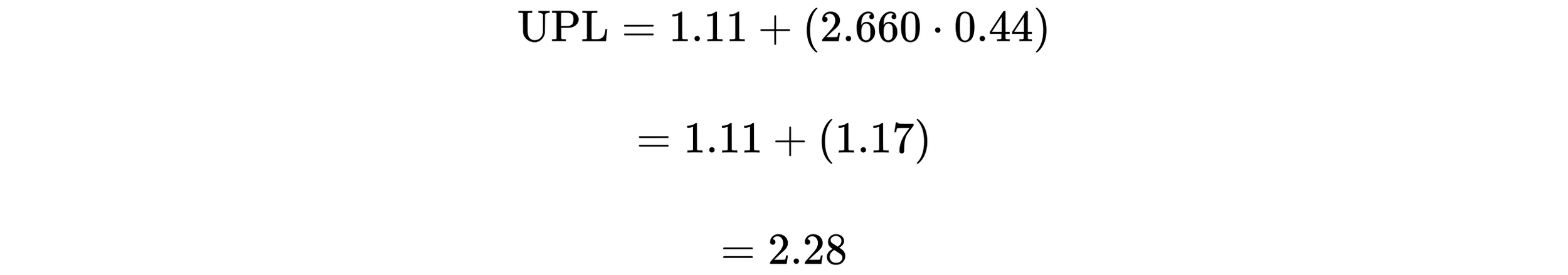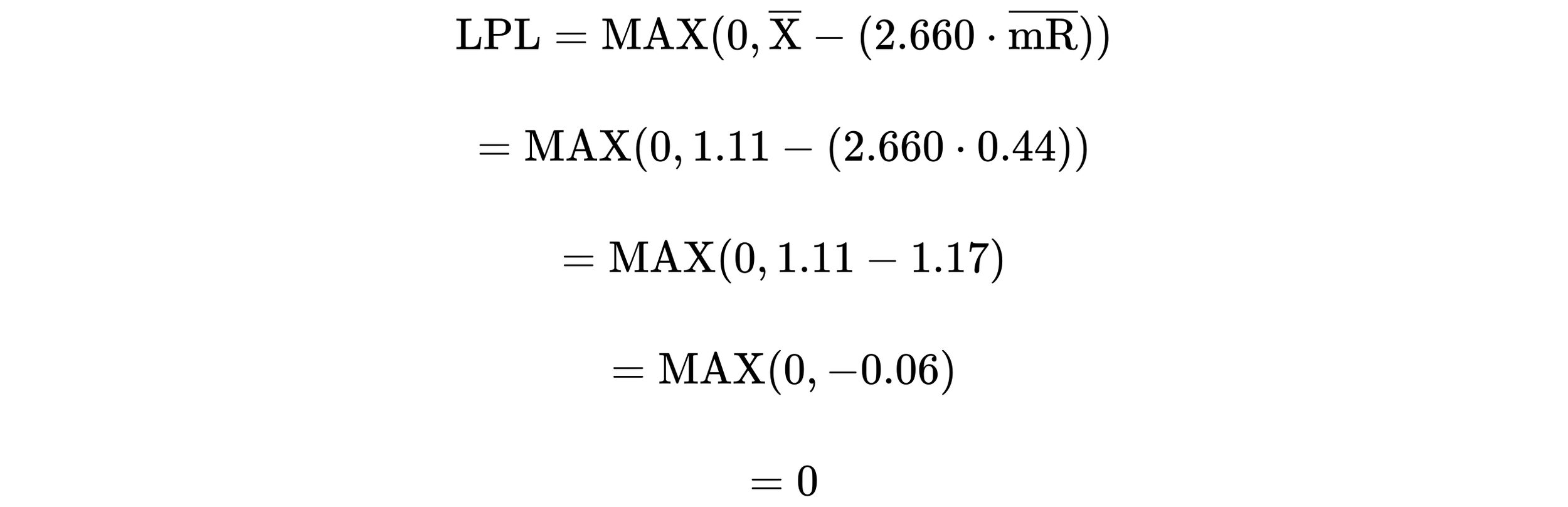 Here, X-Bar is the mean of the individual values in the dataset, 2.660 and 3.268 are scaling factors, and mR-Bar is the average moving range.