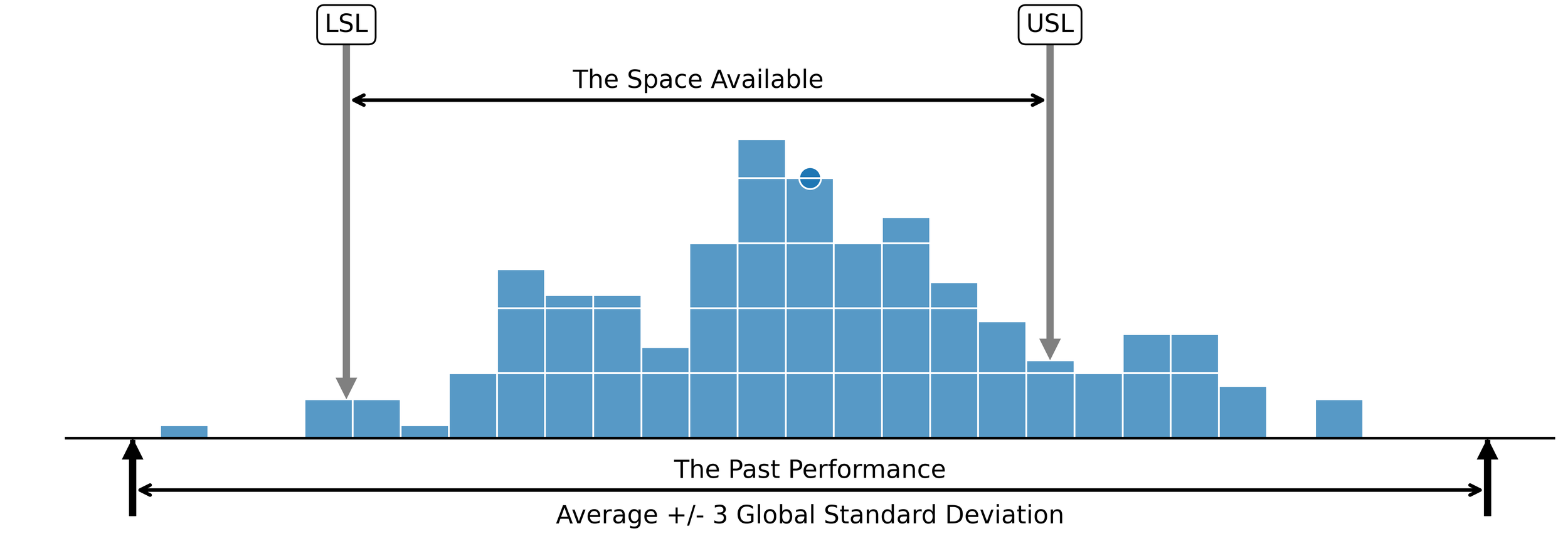 As the space used in the past and the space required by the process converge, so too will the performance ratio converge with the capability ratio. This convergence is indicative of a process that is being operated predictably.