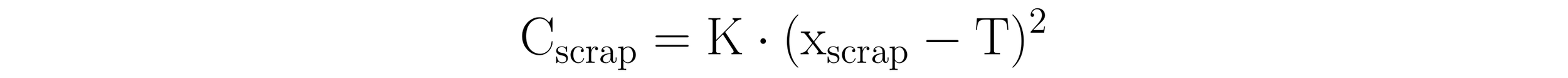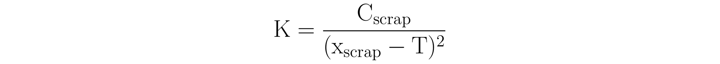 Here, C_scrap is a function of K and the squared deviation of x_scrap from the target. Rewriting this formula in terms of K yields: