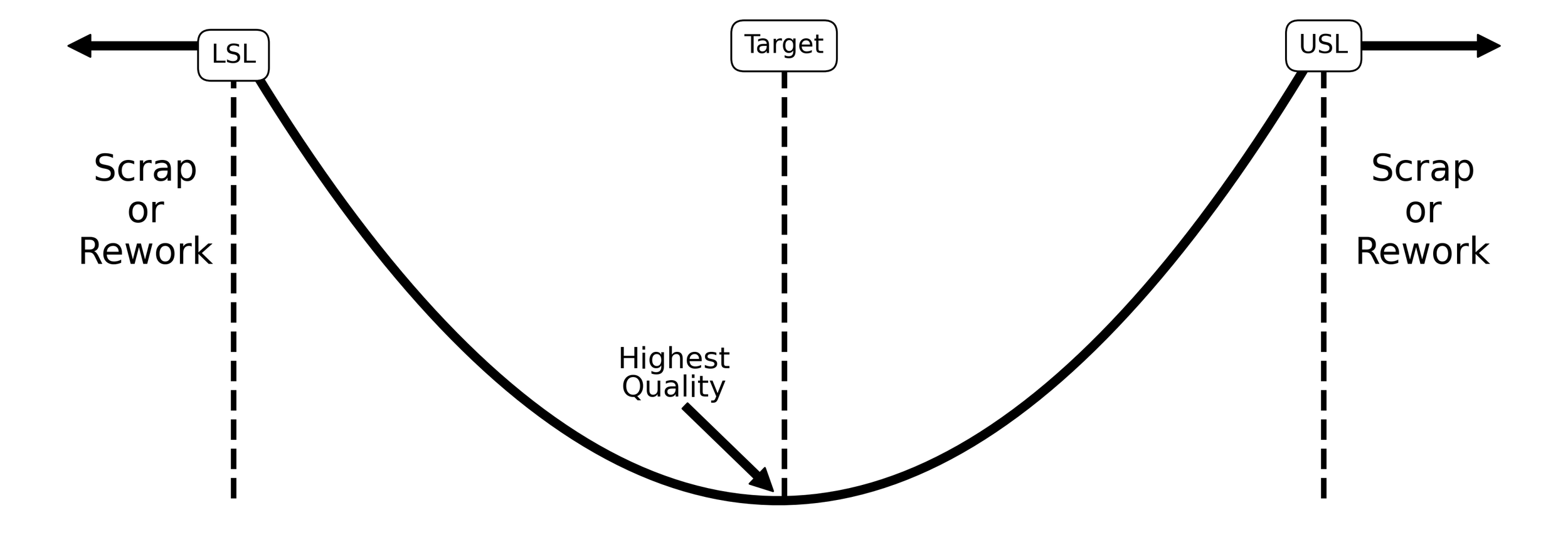 The Taguchi loss function is remarkable for how it reflects the realities of manufacturing. It recognizes that variation, in its ubiquity, influences process outcomes regardless of the specification limits. This promotes a new way of thinking about quality and new goals. Rather than chase “good enough” with adherence to spec, it promotes efforts to produce product that is virtually the same. This inevitably led Dr. Taguchi to his definition of world class quality: